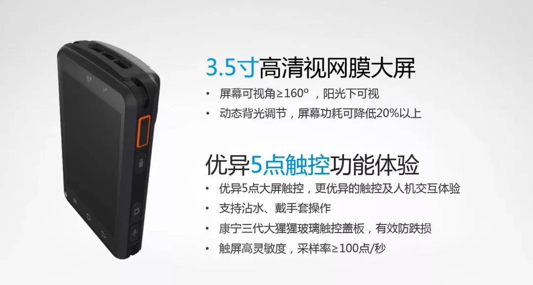 安徽創世科技股份有限公司融合多項技術,基于移動執法理念,為公安行業專業定制了智眸系列4G執法記錄儀, 利用科技信息化、智能化、移動化技術方案提升警務能力。采用三防IP68設計、Android 8.1操作系統、MTK四核*速處理器、專用按鍵搭配及盲視操作設計,配合3.5寸高清視網膜屏,并支持雙卡雙待及VOLTE功能,可實現全警種的執法記錄應用。